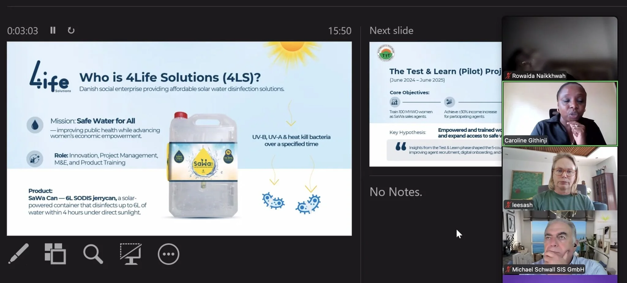 Caroline Githinji, Managing Director of 4Life Solutions, explained that the organisation’s mission is “safe water for all, improving public health while advancing women’s economic empowerment.”